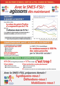 En cette rentrée, le SNES-FSU appelle à l’action (préavis de grève, actions le 10/09, grève interprofessionnel le 18/09). Tract à télécharger dans cet article.