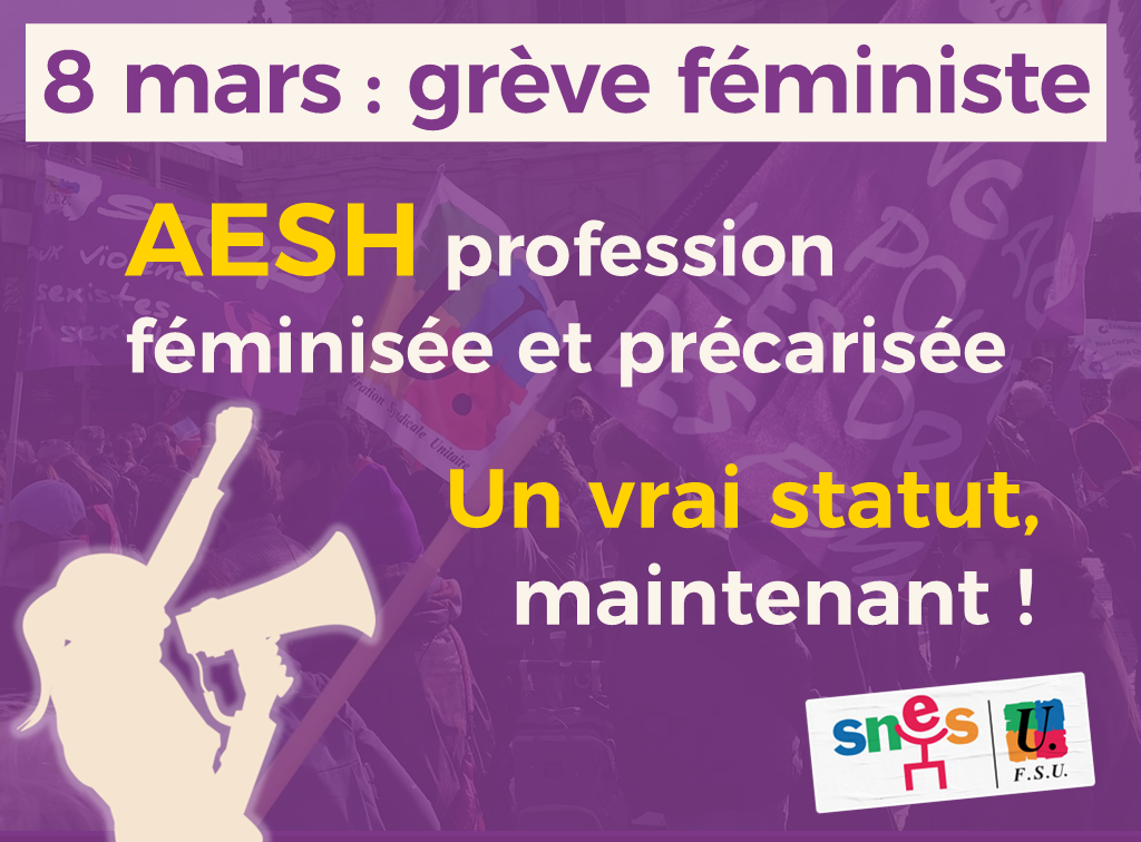 Le SNES et la FSU s’engagent pleinement dans la mobilisation en faveur d’un statut pour les accompagnant·e d’élèves en situation de handicap, symbole de la ségrégation professionnelle, et exige l’abrogation des mesures injustes, un véritable statut, la revalorisation des métiers féminisés et des moyens renforcés pour les services publics.