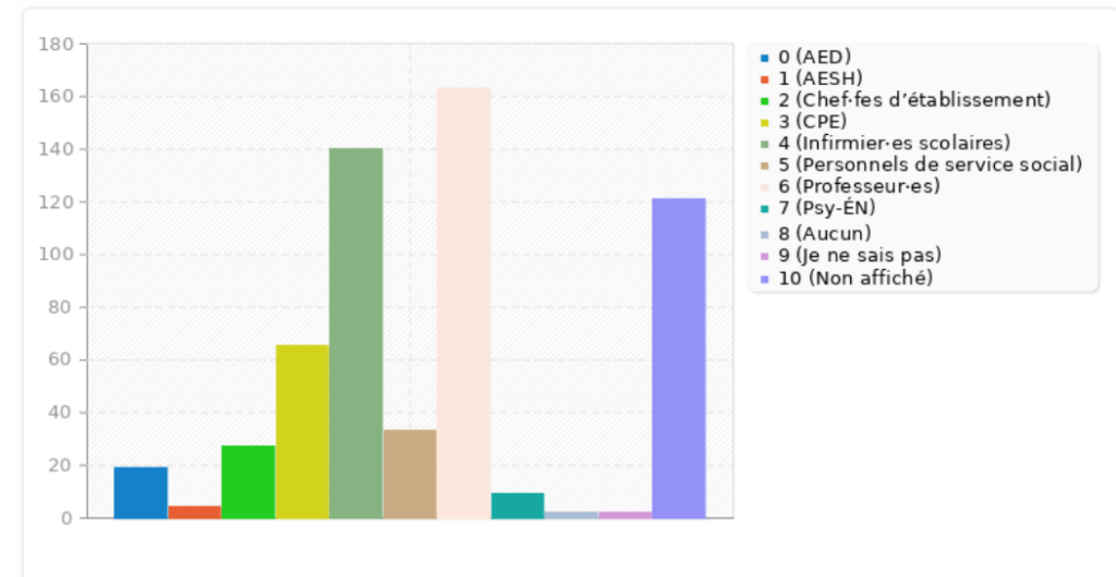 Par ailleurs, on note une très forte présence des enseignant·es de SVT dans les personnels volontaires, suivi·es des professeur·es de lettres, d’histoire-géographie et des professeur·es-documentalistes. Il faudra veiller à ce que les collègues en question ne se voient pas imposer la prise en charge de l’ÉVARS sous prétexte que cette éducation serait une sorte de « prolongement » de la discipline SVT. Ce serait réduire l’ÉVARS au champ biologique, alors que le programme est bien plus ambitieux et étendu, et ferait peser une pression inacceptable sur des collègues.