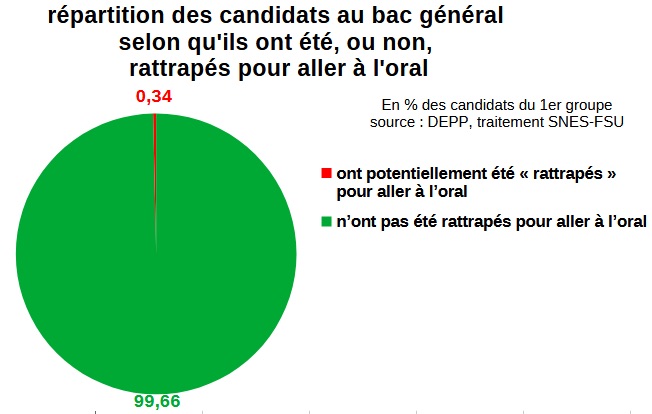 Que penser de l’interdiction du repêchage, qui ne concernait presque… PERSONNE? Les candidat·es admis à passer les épreuves de second groupe avec 8 de moyenne, pile, représentent 0,34% de l’ensemble des candidat·es de la voie générale, chiffre encore surestimé car comprenant celles et ceux qui ont 8 de moyenne sans ajout de points de jury. Cela représente 1244 candidat·es sur les 366 055 de la voie générale. Qui a eu le bac dans cette configuration avec des points de jury, PERSONNE !