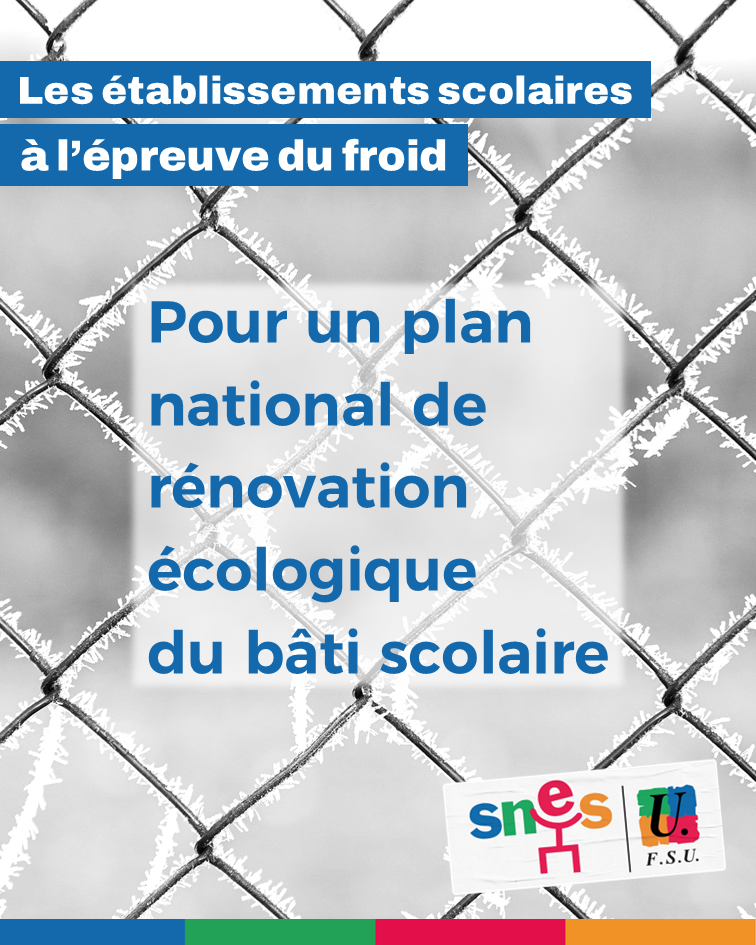 Le SNES-FSU demande un bilan thermique exhaustif des établissements scolaires et des CIO, ainsi que prévu par le Plan climat de 2017 et le décret « bâtiment tertaire », ainsi qu’une planification des rénovations à mener, assortie du budget afférent.